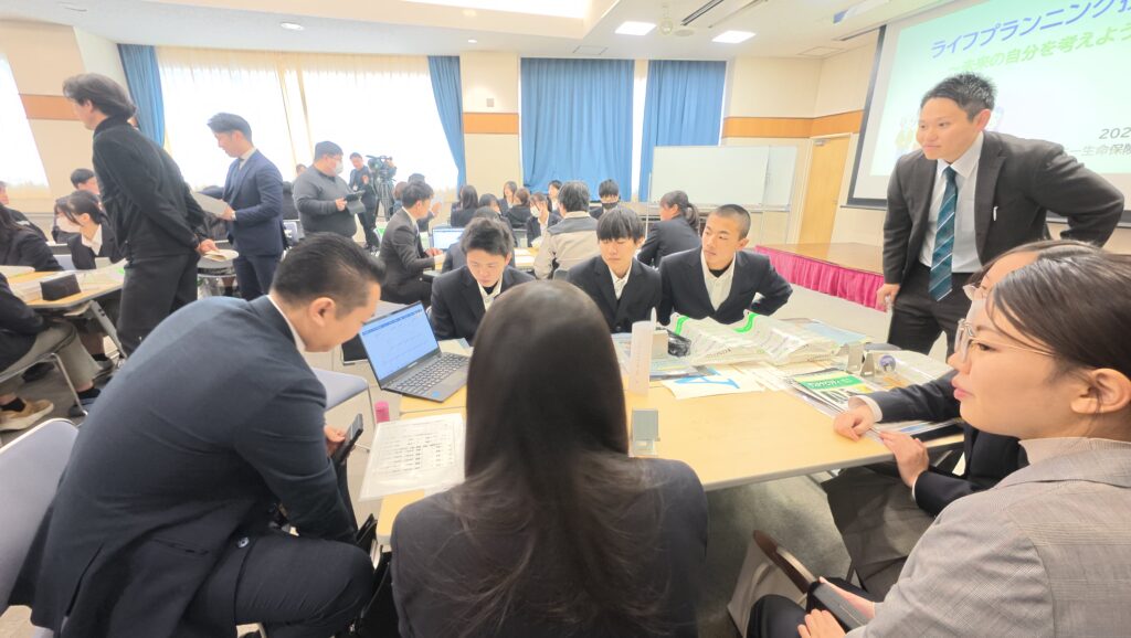 本校では、3年間のカリキュラムとしてライフプランの授業をしているということもあり、今回の授業では、企業様と一緒にリアルな将来を考えるきっかけを得る時間となるよう、進行していきました!